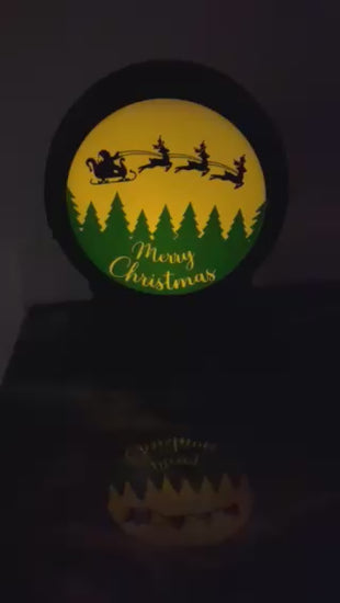 Add festive charm to your home with this versatile 3D-printed holiday display. The main design features a black round frame with a warm, welcoming Merry Christmas panel showcasing Santa and his reindeer. Open the front door, place a tea light inside, and enjoy the cozy seasonal glow.